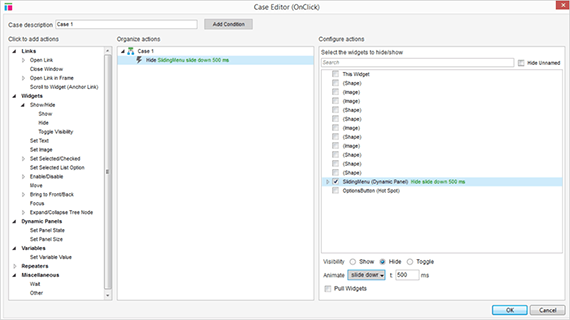 注意:设置面板状态动作会自动显示动态面板,所以,不需要再添加显示面板动作。