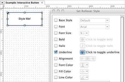 右键单击按钮形状,选择“编辑按钮形状->编辑鼠标按下样式”打开编辑对话框。再次添加下划线,另外勾选填充颜色复选框,在颜色选择器中选择浅灰色,设置按钮为浅灰填充颜色。单击“确定”关闭对话框。